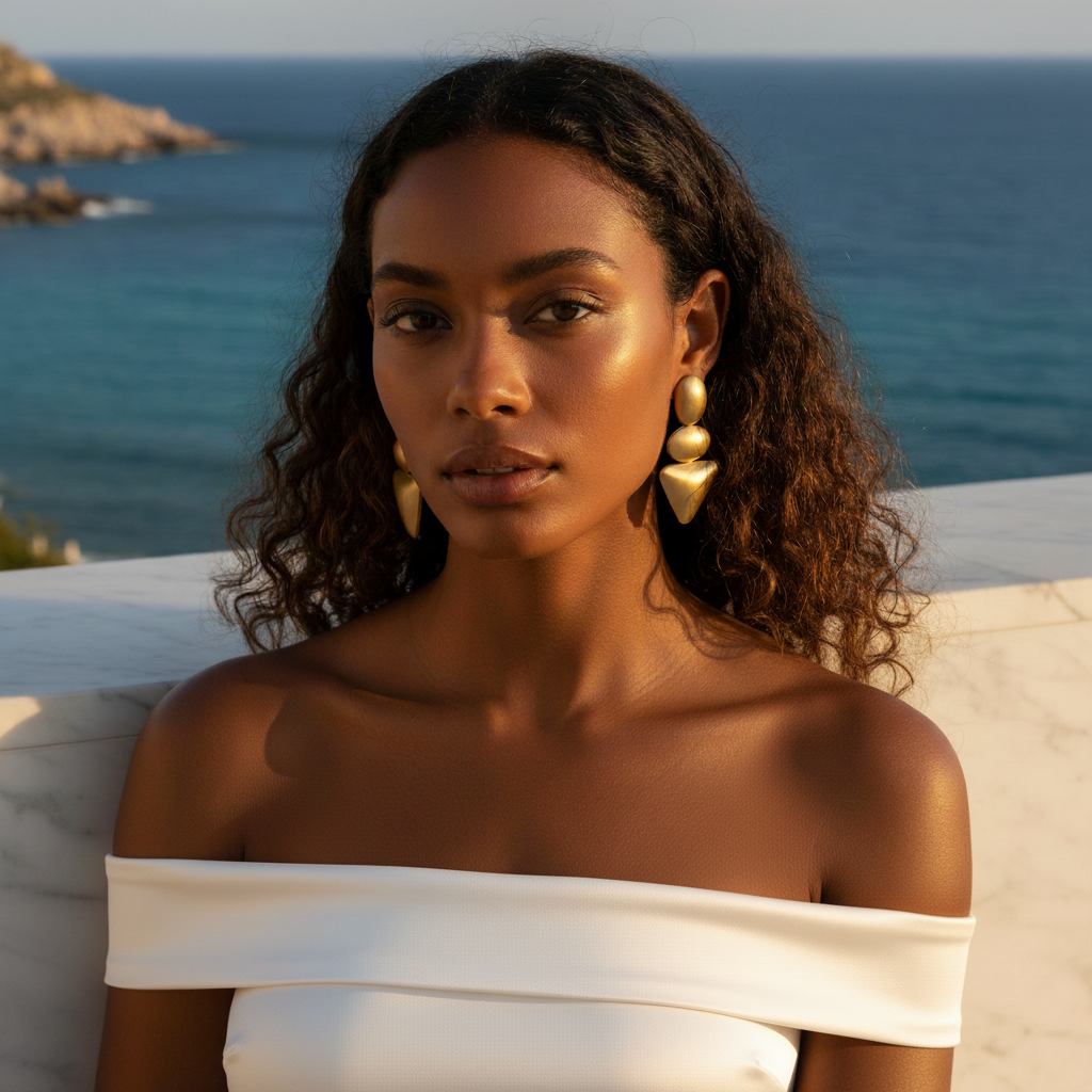 Sleek, sculptural, and effortlessly sophisticated—the Anita Earring is a bold statement in refined minimalism. Featuring a triple-tier stacked drop design, these earrings blend geometric elegance with modern edge, creating a silhouette that is both striking and versatile.